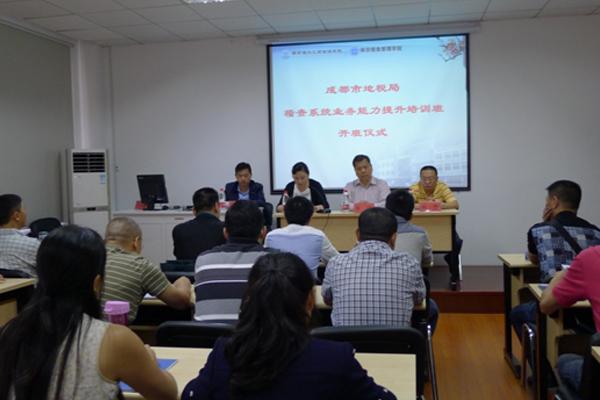10月8日至17日 ,成都市地税局稽查系统业务能力提升培训班在我院杭州培训基地举办,共50名学员参加了本次培训。成都市地税局李平副局长、稽查局杨杰局长,学院徐玫院长助理、继续教育处柯磊副处长参加了开班仪式。本期培训主要是围绕稽查业务,并选配了一些经济管理类专题,例如《稽查业务实务》、《房地产开发企业的税务检查》、《当今世界格局与中国外交战略》、《创新思维与国学智慧》等。
